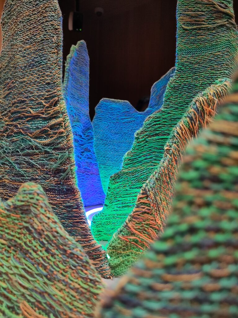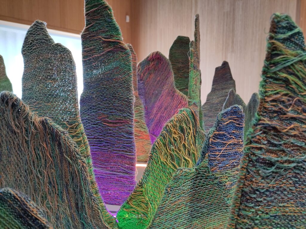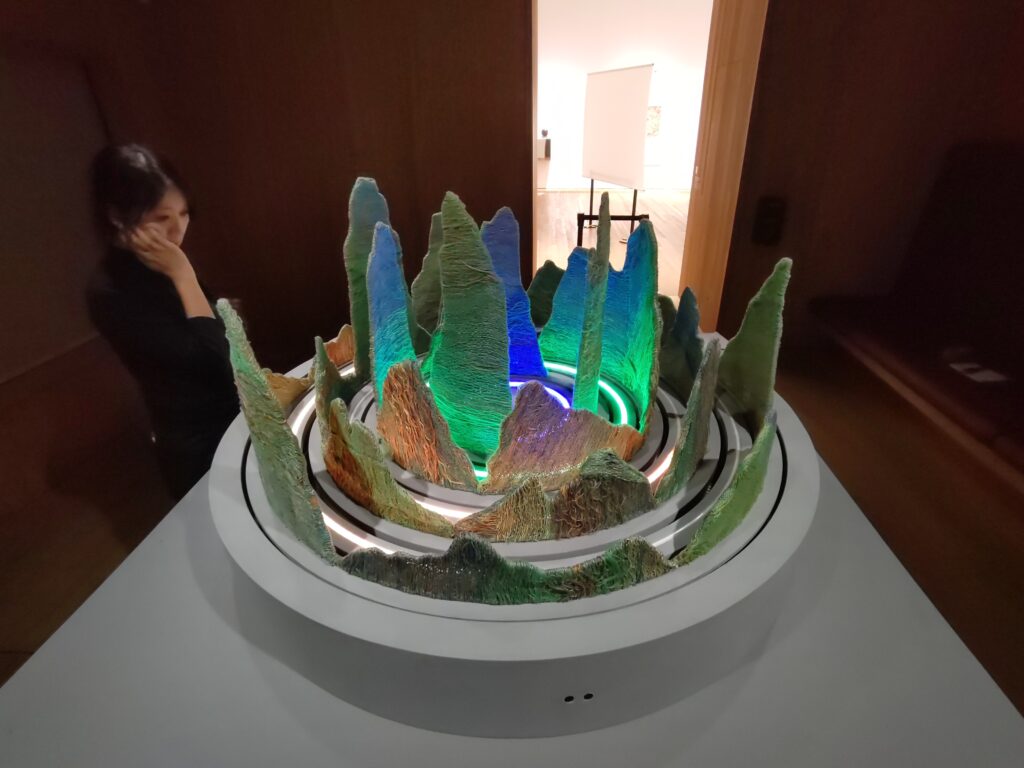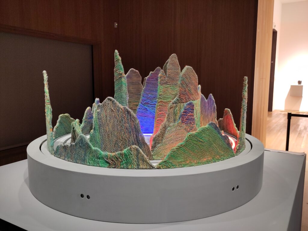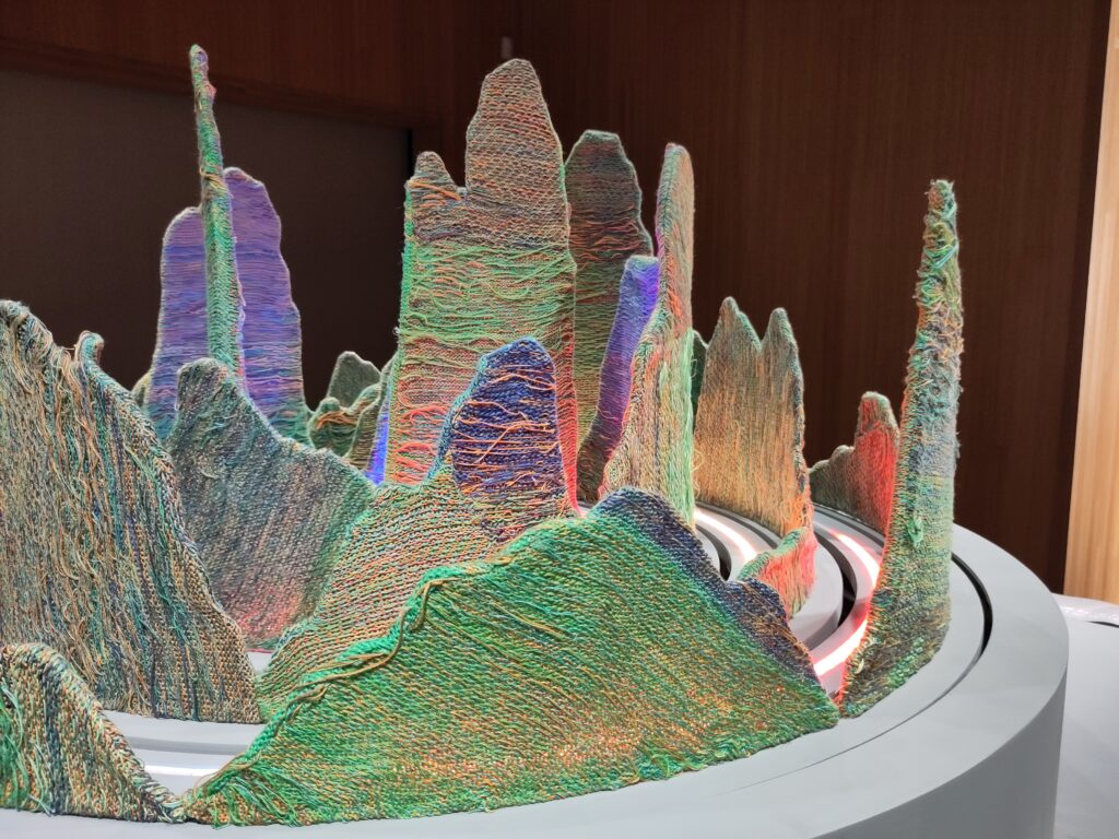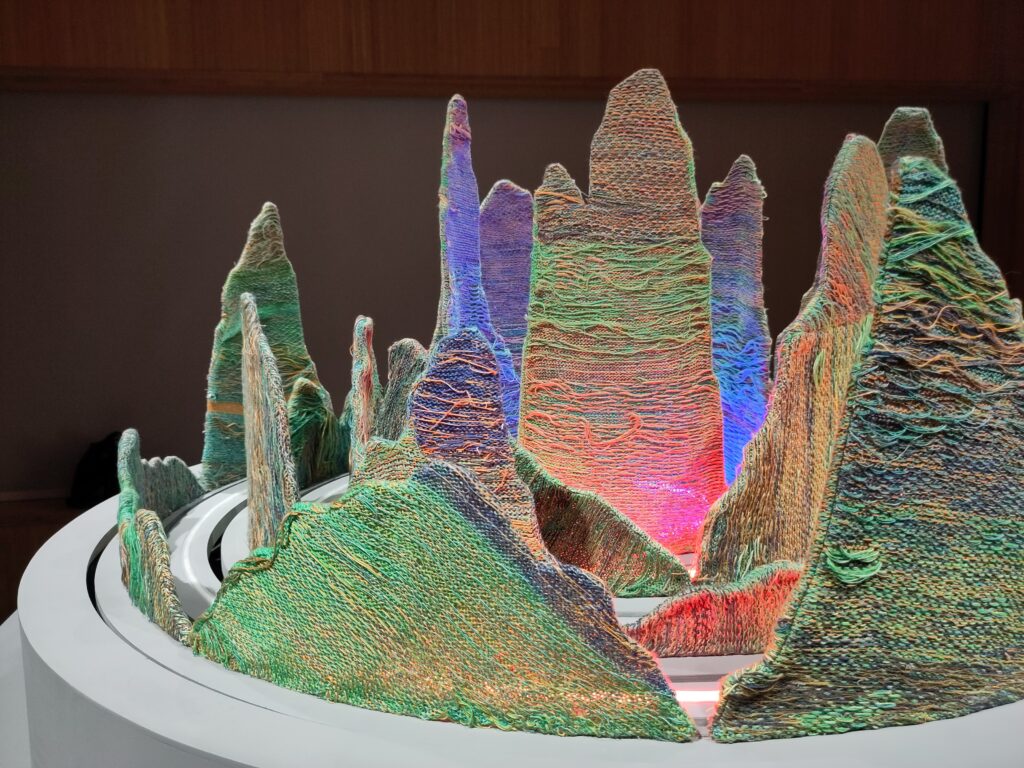 The work is an ode to Shanshui paintings, bridging tradition and modernity through its interactive nature and the composition of textiles.